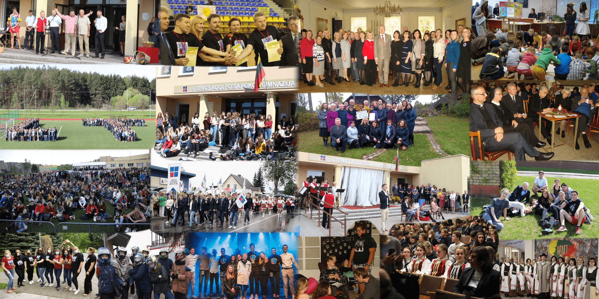 Mokykla atidaryta 1996 m. Pastačius naują pastatą, gimnazija pradėjo savo veiklą kaip Utenos vidurinė mokykla ir vadinosi Utenos vidurinė mokykla-gimnazija, o 1997 m. jai buvo suteiktas istoriko Adolfo Šapokos vardas ir gimnazijos statusas. Utenos Adolfo Šapokos gimnazija yra bendrojo ugdymo įstaiga, vykdanti pagrindinio ugdymo antrosios dalies ir vidurinio ugdymo, neformaliojo vaikų švietimo ir kt. programas.