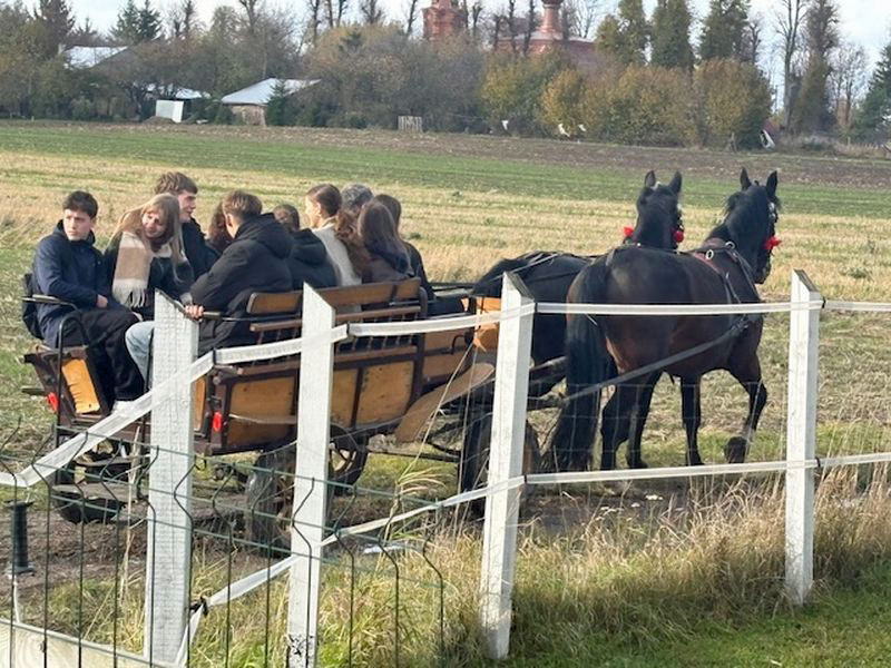 Trečiadienį po pietų mūsų laukė maloni staigmena: Rozalios Paszkiewicz šeima (jie priėmė pas save gyventi Pauliną) pakvietė visus į savo sodybą, tad vykome į Czulczyce. Ten šeima turi žirgyną. Mokinius ir mokytojus Rozalios tėtis vežiojo arkliais pakinkytu vežimaičiu po apylinkes. Norintieji galėjo ne tik apžiūrėti žirgyną, bet ir pajodinėti. Be to, tėvai organizavo įsimintiną barbekiu vakarėlį.