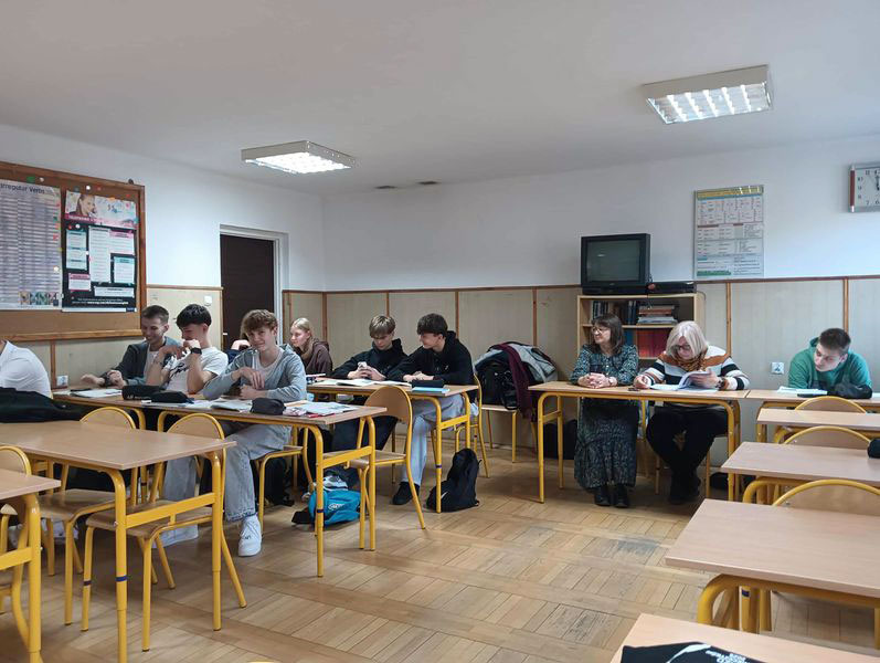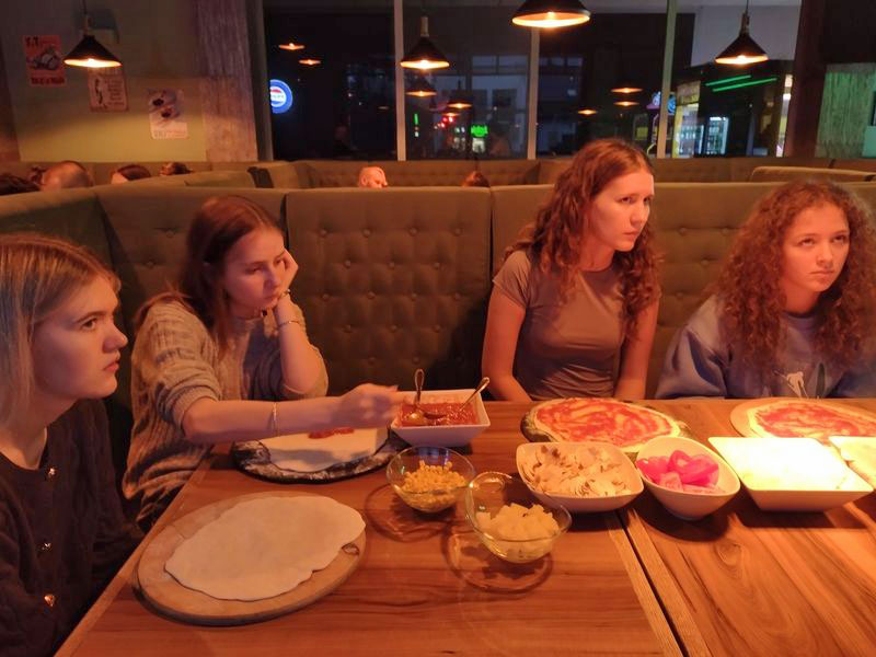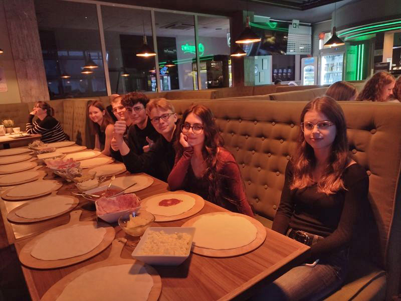 Kitą rytą, spalio 28 d., visi buvo pakviesti susirinkti mokykloje. Savaitės programa, kurią pasiūlė lenkai, buvo turtinga ir patraukli. Kadangi vienas iš šių metų mainų programos uždavinių buvo susipažinti su Lenkijos mokymosi sistema ir ugdomojo proceso organizavimu bei mokinių mokymusi, pirmąją dienos dalį (iki pietų) mūsų mokiniai apžiūrėjo mokyklą ir mokėsi pamokose kartu su savo partneriais lenkais. Po pietų, lydimi direktorės Martos Sadowskos ir mokytojos Monikos Skrzypczak, visi programos dalyviai nuvyko į miesto rotušę, kur dalyvavo susitikime su Chelmo mero pavaduotoja Dorota Cieślik ir Švietimo departamento direktore Agnieszka Walewska-Maksymiuk. Užsimezgė pokalbis. Tarp kitų temų buvo aptariamas jau ilgai trunkantis bendradarbiavimas ir tolesni planai. Vėliau buvo organizuota išvyka į Chelmo vandens parką. Tai buvo ne tik puiki pramoga pasilepinti saunoje, paplaukioti baseine ar pasimėgauti vandens atrakcionais. Abiejų mokyklų mokiniai turėjo puikią progą tobulinti komandinio darbo kompetencijas varžydamiesi grupėmis, žaisdami boulingą ar biliardą. Paskutinė „skani“ pramoga Vandens atrakcionų parke buvo „picų edukacija“. Mokiniai patys gamino picas: kūrė picos dizainą, rinkosi produktus pagal savo skonį, darė jas kuo išskirtinesnes, kad picoms iškepus, galėtų atskirti savąją. Pačių mokinių keptos picos buvo tikrai skanios, be to, tai buvo puiki galimybė atlikti užduotis komandoje, smagiai pabendrauti po turiningos, nors ir pakankamai ilgos darbo dienos bei pasidalinti patirtais įspūdžiais.