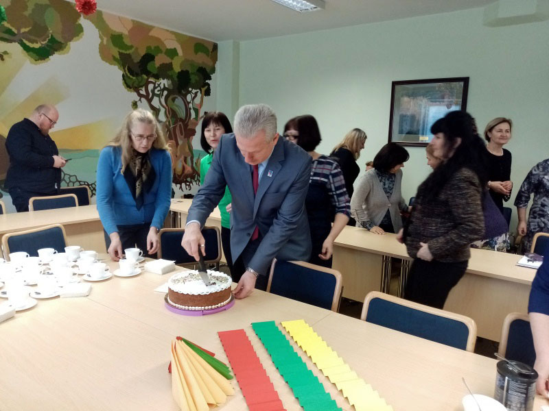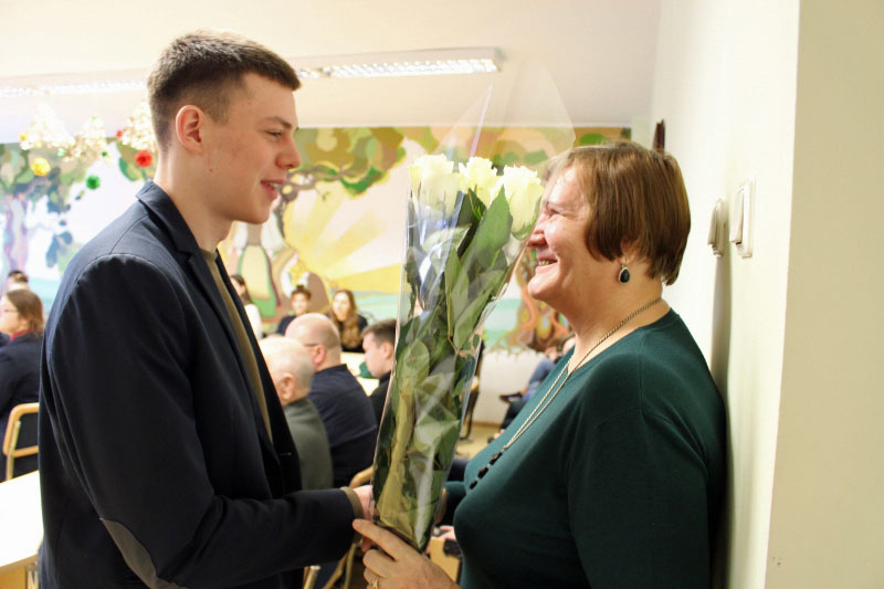Po pamokos gimnazijos socialinė taryba pakvietė pasivaišinti gimtadienio tortu.