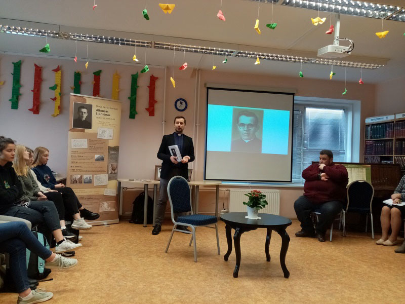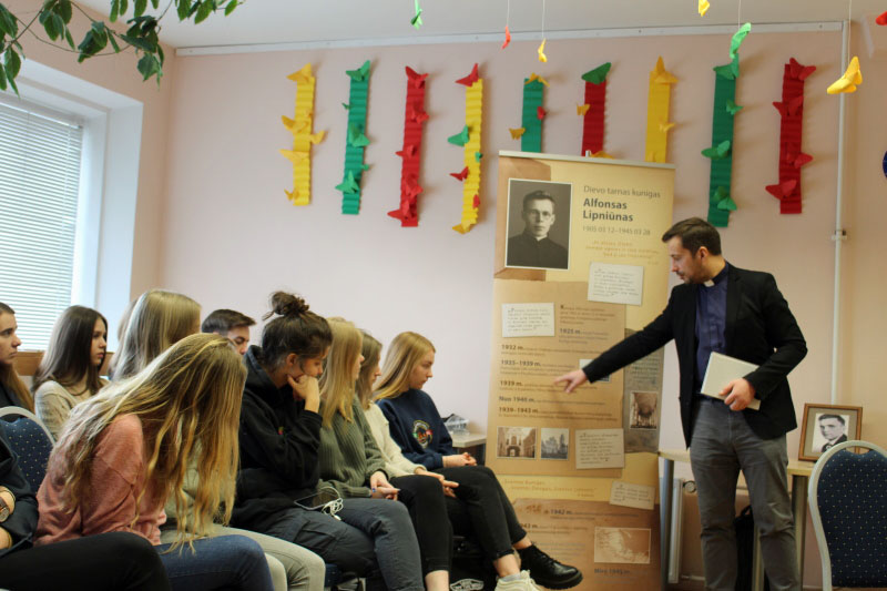 Su ketvirtų klasių gimnazistais susitiko kunigas Vitalijus Kodis, Dievo tarno kunigo Alfonso Lipniūno beatifikacinės bylos postulatorius. Jis dalinosi mintimis apie Adolfo Šapokos mokslo draugą Panevėžio gimnazijoje, vėliau kunigą, kankinį Alfonsą Lipniūną.