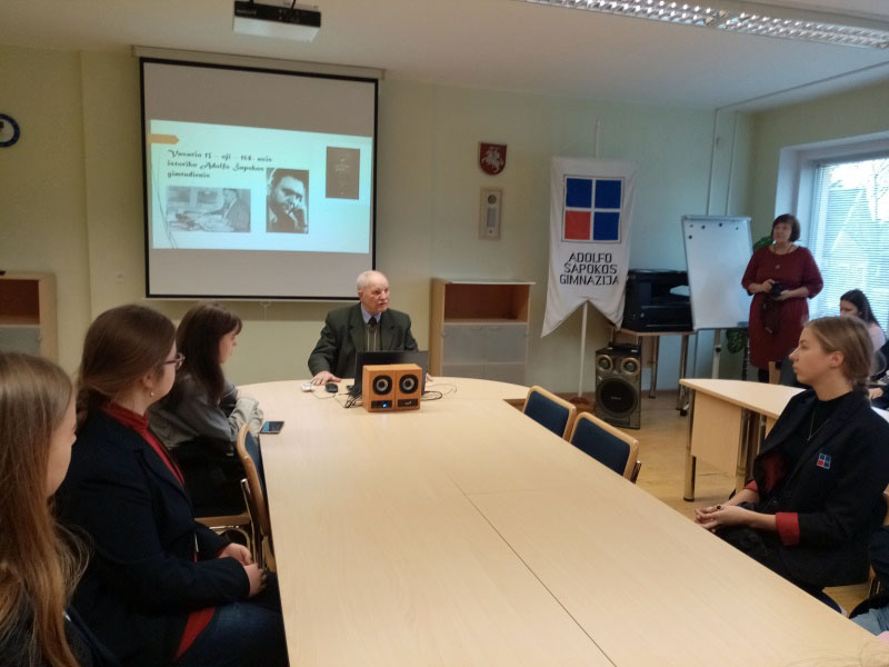 Vasario 13 d. gimnazijos bendruomenė paminėjo savo globėjo istoriko Adolfo Šapokos 114-ąsias gimimo metines. Pirmų ir trečių klasių istorijos pamokoje svečiavosi Adolfo Šapokos sūnėnas Algirdas Šapoka su savo sūnėnu sporto žurnalistu Mariumi Grinbergu ir Adolfo Šapokos atminimo puoselėtoja mokytoja Birutė Kairienė. Svečiai mokiniams pasakojo apie istoriko asmenybę, veiklą, jo darbų reikšmę lietuvių tautinės savimonės brandai.