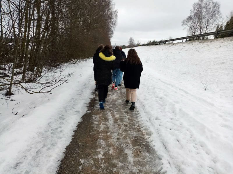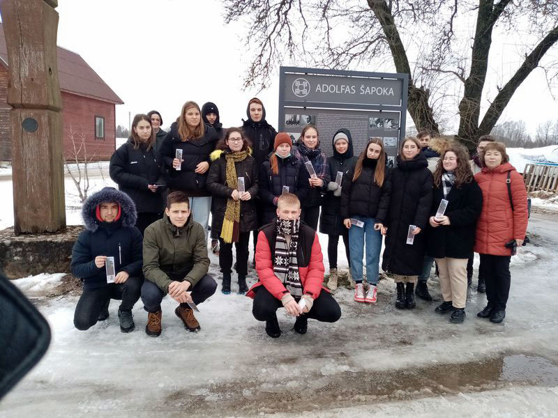 Vasario 9 d. 2a klasės mokiniai dalyvavo integruotoje kūno kultūros ir istorijos pamokoje Grybeliuose, istoriko Adolfo Šapokos tėviškėje.
