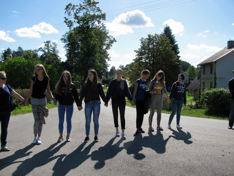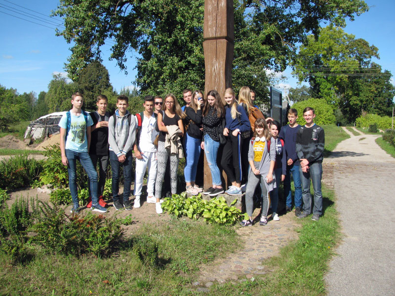 Antrų klasių gimnazistai per pilietiškumo pamokas apsilankė Grybeliuose, istoriko A. Šapokos tėviškėje, prie P. Kaziūno stogastulpio.