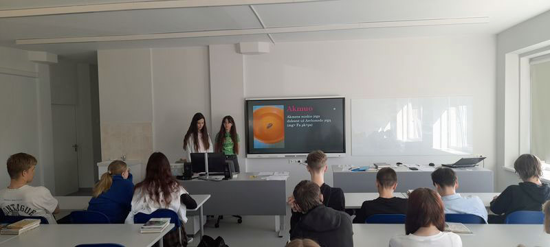 Balandžio 18 d. mūsų gimnazijoje vyko I gimnazijos klasių mokinių projektinių darbų pristatymai, kuriuose jaunuoliai pristatė tyrimus ir eksperimentus, atliktus ne tik mokykloje, bet ir namuose bei būrelių veiklose, vykdydami Lietuvos 1000-mečio mokyklų projekto užduotis. Mokiniai pristatė darbus intriguojančiomis temomis, kurių centre – gamtos reiškiniai.