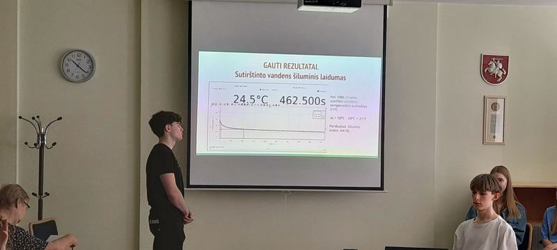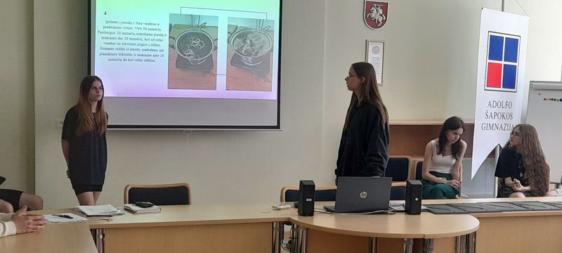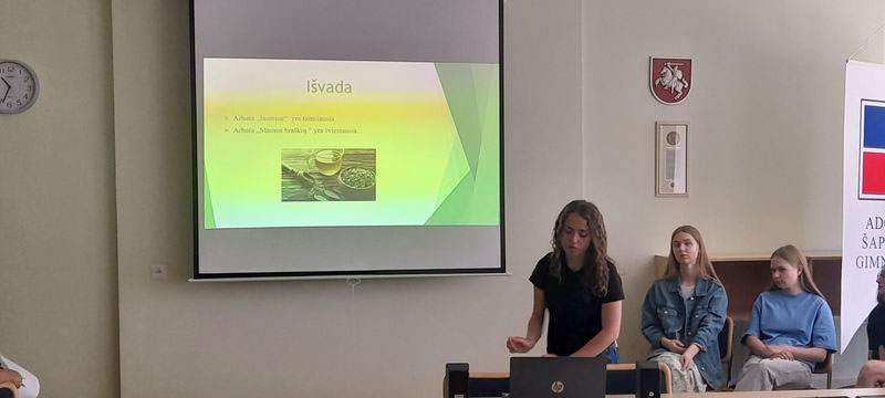 Gegužės 24 d. mūsų gimnazijoje vyko mokinių projektinių darbų pristatymas bendruomenei. Šiais metai mokiniai aktyviai vykdė projektinę tiriamąją veiklą. Tyrė upių vandenį, kūrė ekologiškus dažus, tyrinėjo kavos, arbatos ypatybes. Dalis darbų buvo inžinerinės pakraipos, pastatų šiltinimo, langų infraraudonųjų spindulių pralaidumo tyrimai.