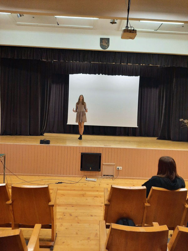 Utenos kraštotyros muziejaus padalinio Laisvės kovų muziejaus vadovė Regina Zapolskienė mokiniams apibendrino ir pristatė projekto „Susitikime U stotyje 2“ veiklas, džiaugėsi mūsų gimnazijos mokinių aktyviu dalyvavimu šio projekto veiklose. Projekto dalyvis ketvirtokas Rojus Urbonas atliko partizanų dainą „Jei ne auksinės vasaros“, o ketvirtokė Karolina Kamarauskaitė, taip pat aktyviai dalyvavusi projekto veiklose, skaitė Romualdo Granausko novelės ištrauką.