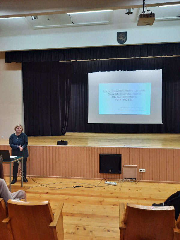 Lapkričio 24 d. pirmokų pilietinio ugdymo pamokoje paminėta Lietuvos kariuomenės diena. Pamokoje svečiavosi Utenos kraštotyros muziejaus vyriausioji fondų saugotoja Bronislava Juknevičienė, kuri mokiniams skaitė paskaitą „Lietuvos kariuomenės kūrimasis. Nepriklausomybės kovos Utenos apylinkėse 1918–1920 m.“.