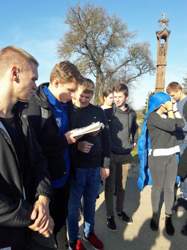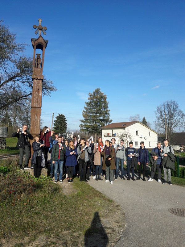 Spalio 24 d. 2a ir 2b klasių mokiniai per pilietinio ugdymo pamokas lankėsi Grybeliuose – istoriko Adolfo Šapokos tėviškėje. Džiaugdamiesi gražiu rudenišku oru, įgyvendindami Sveikos gyvensenos programą, mokiniai ne tik pasivaikščiojo, pabendravo, bet ir pagilino žinias apie savo gimnazijos globėjo istoriko Adolfo Šapokos gyvenimą ir veiklą dalyvaudami mini viktorinoje, kolektyviai skaitydami „Lietuvos istorijos“ skyrių apie Lietuvos valstybės kūrimą 1918–1919 m.