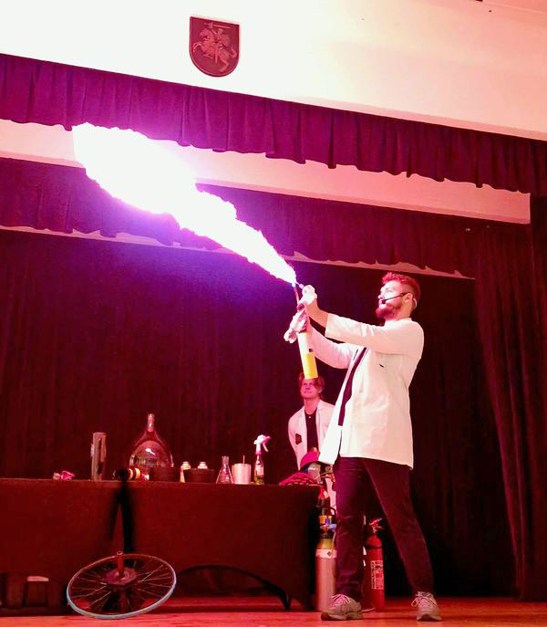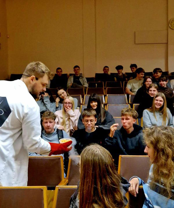 Renginio metu mokiniai ne tik stebėjo įspūdingus bandymus, bet ir patys galėjo išbandyti kai ką neįprasto – paragauti skystu azotu užšaldytų kukurūzų rutuliukų. Šį smagų eksperimentą pristatė N2 komandos nariai, kurie paaiškino, kaip itin žema temperatūra akimirksniu užšaldo produktus, o skystas azotas saugiai išgaruoja palikdamas tik traškų, burnoje tirpstantį skanėstą. Daug džiaugsmo ir emocijų sukėlė ir ugnies bei dūmų efektai, kurie leido geriau suprasti cheminių reakcijų veikimą.