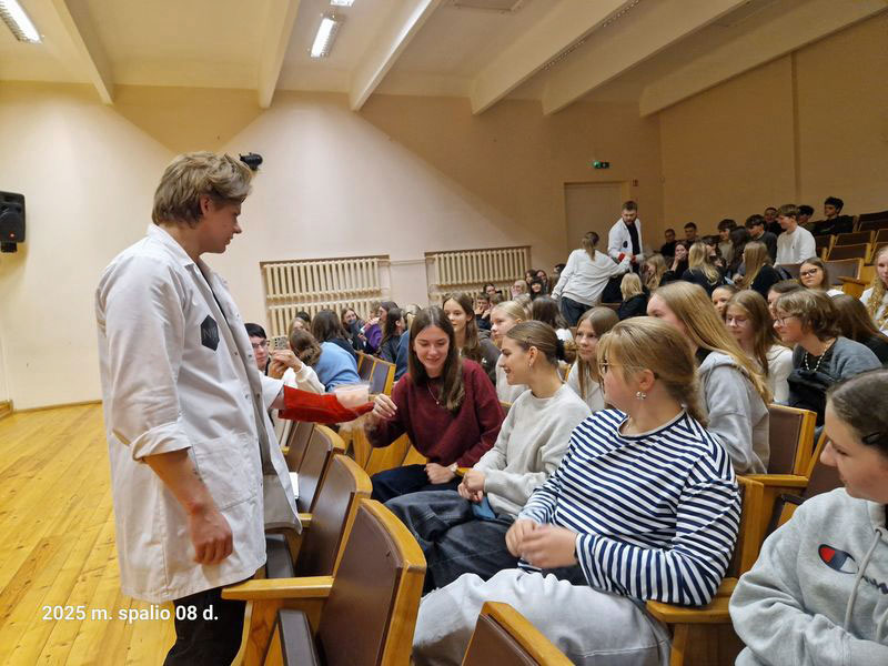 Kai kurie mokiniai drąsiai sutiko patys dalyvauti eksperimentuose, todėl renginys tapo dar įdomesnis ir interaktyvesnis.