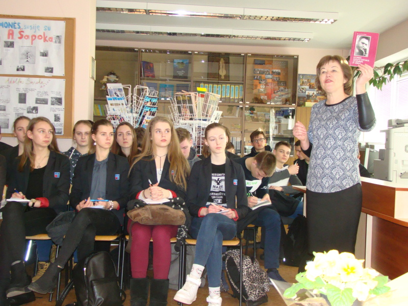 Gimnazijos aktų salėje gimnazistams vyko VU profesoriaus Rimvydo Laužiko istorinė paskaita „Pietūs su Radvilomis“. Šventėje dalyvavo ir „Saulės“ gimnazijos bei progimnazijų atstovai, kurie mokytojos Aureolės Maračinskienės pakviesti dovanojo parodą „Draugai draugams“. Svečiai išmoko pasigaminti knygeles, kuriose surinkta informacija apie Adolfą Šapoką, vaišinosi gimtadienio tortu ir lankėsi istoriko Adolfo Šapokos atminimo kambaryje.